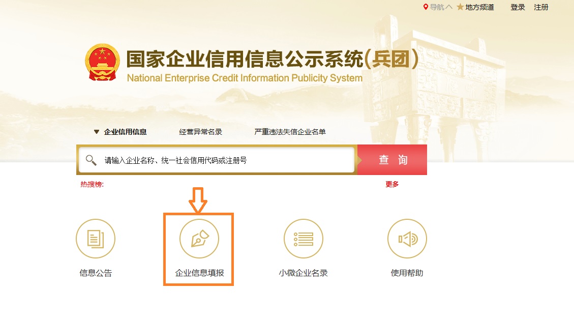 通过电脑浏览器访问https://nb.sjj.xjbt.gov.cn,进入“国家企业信用信息公示系统(兵团)”。