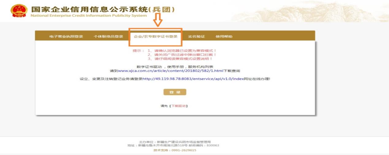 企业/农专数字证书登录:使用数字证书登录,首次登录,请下载证书驱动,插入证书,点击“登录”,输入证书口令,即可登录。