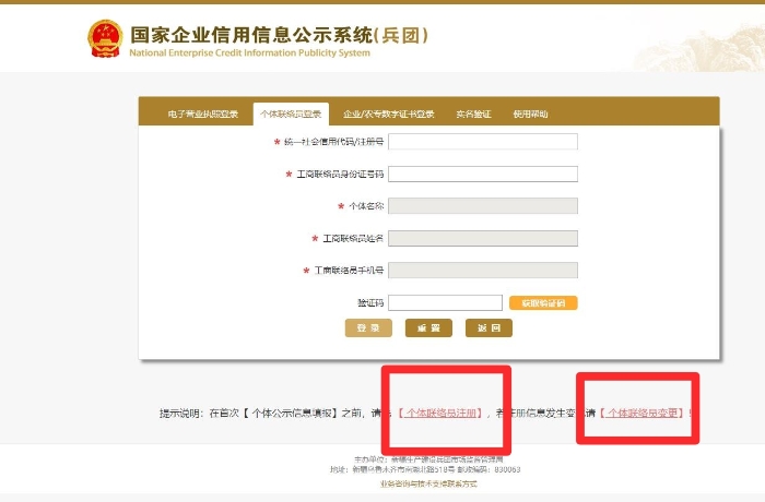 个体联络员登录:在首次登录之前,请先【企业联络员注册】,在登录界面“个体联络员登录”标签下,点击“个体联络员注册”,填入相关个体信息后点击“保存”,联络员注册成功。