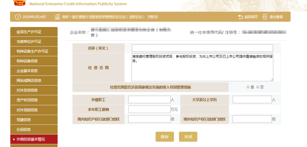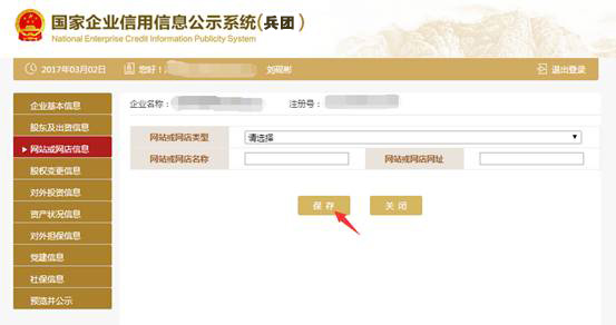 需要填报的通信地址、邮政编码、联系电话、电子邮箱、存续状态、网址、网站信息均为报送时的信息,其余信息为所报告年度12月31日的信息。如果有网站或网店就点“是否有网站或网店”后面的“是”字前的圆点,如果没有网站或网店就点“否”字前的圆点。填写完后点“保存”。