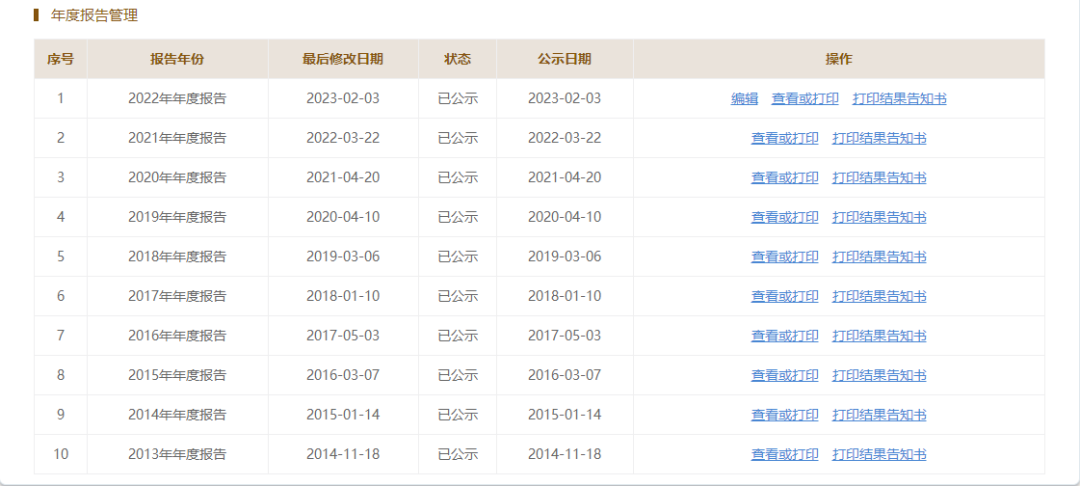 这一步很重要!提交年报公示后,在2至3个工作日后,记得在“国家企业信用信息公示系统(兵团)”首页,输入企业名称或统一社会信用代码,进入企业信用信息的详情页,滑动浏览器界面找到“企业年报信息”标签,查核是否正常显示了您填写并提交的“2023年度年报”。
