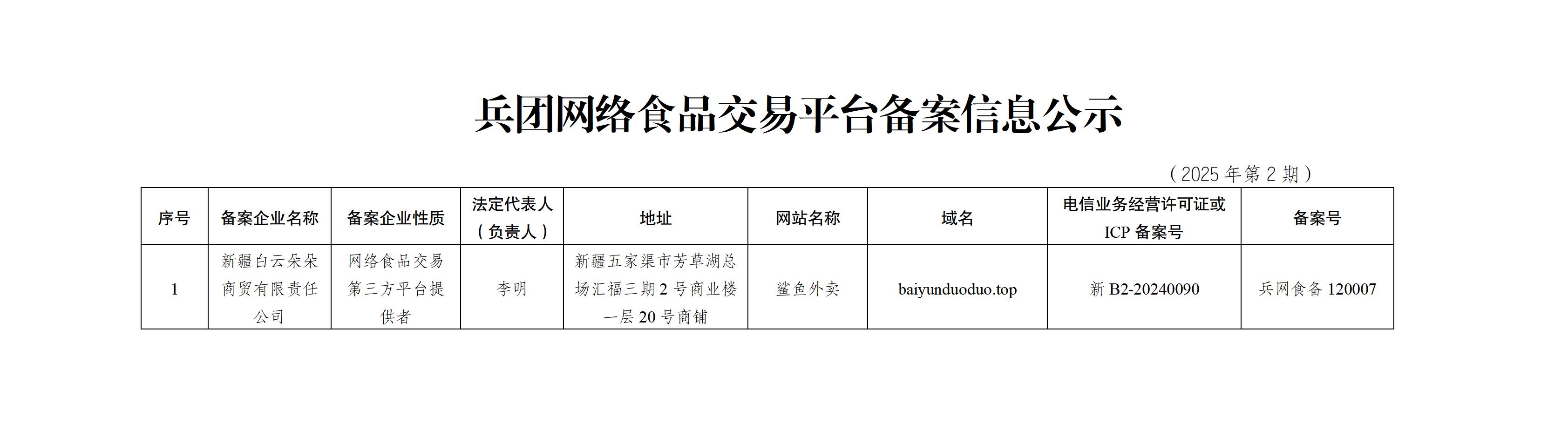 兵团网络食品交易平台备案信息公示(2025年第2期).doc