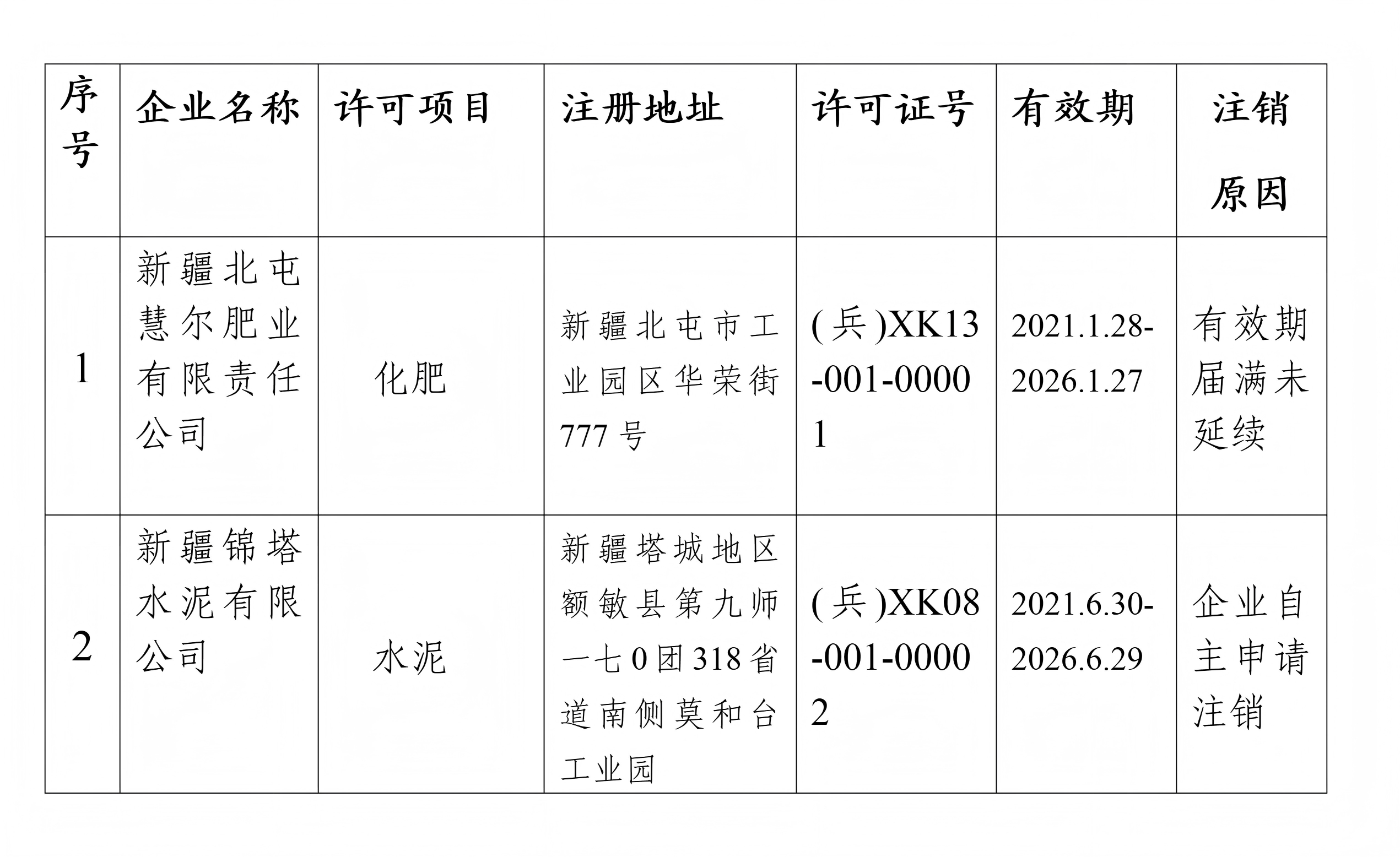 依据《中华人民共和国行政许可法》《中华人民共和国工业产品生产许可证管理条例》《中华人民共和国工业产品生产许可证管理条例实施办法》有关规定,我局决定以下企业的工业产品生产许可证证书(详见附表),注销的编号和证书停止使用。